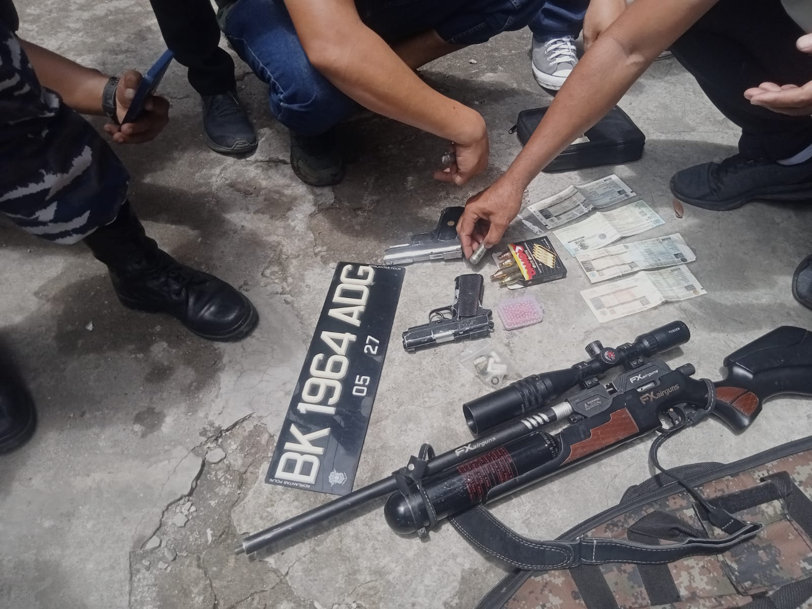 Selain mengamankan keempat orang tersebut petugas gabungan juga menyita sejumlah barang bukti berupa satu pucuk senapan laras panjang jenis Airgun,satu pucuk senjata pistol jenis Airgun,dua pucuk senjata oistol jenis Air Softgun,