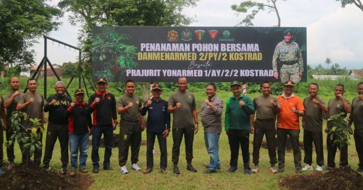 MALANG – Komandan Resimen Armed 2 Kostrad, Kolonel Arm Rohmadi, S.Sos., M.Tr.(Han), memimpin kegiatan penanaman ratusan pohon di Bumi Ajusta, Yonarmed 1 Kostrad, Malang, Jumat (2/1/2026). Kegiatan ini merupakan wujud nyata kepedulian TNI Angkatan Darat terhadap pelestarian lingkungan serta upaya menjaga keseimbangan alam di wilayah satuan.