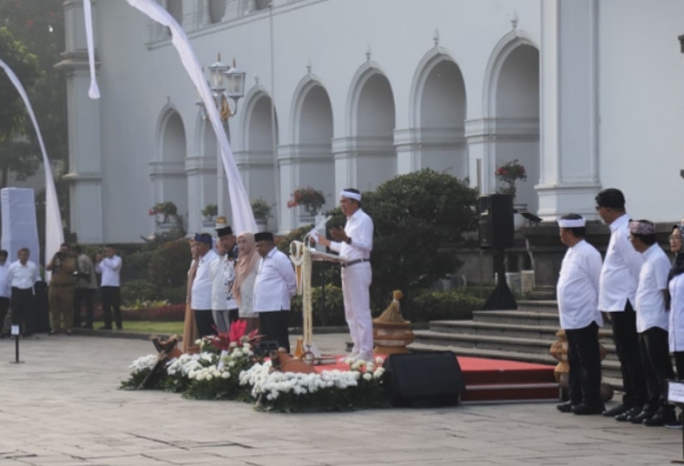 Bandung — Bupati Bogor Rudy Susmanto menghadiri kegiatan silaturahmi bersama Gubernur Jawa Barat Dedi Mulyadi serta kepala daerah dan wakil kepala daerah se-Jawa Barat di halaman Gedung Sate, Senin (30/3/2025).