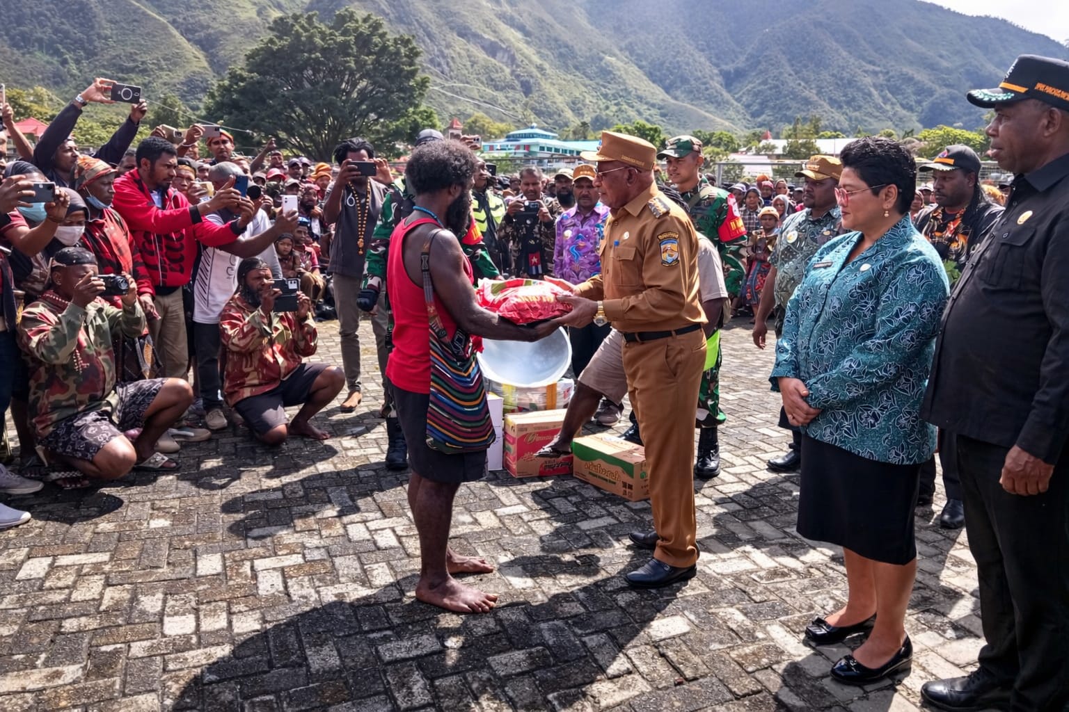 Puncak Jaya – Pemerintah Kabupaten Puncak, dipimpin Bupati Elvis Tabuni, bersama rombongan mendatangi Kabupaten Puncak Jaya untuk memberikan bantuan sembako kepada masyarakat yang mengungsi dari tiga distrik di Kabupaten Puncak. Kegiatan berlangsung di sekitar Bandar Udara Mulia, Jalan Trans Papua, Kampung Trikora, Distrik Mulia pada hari Sabtu (21/02/2026).