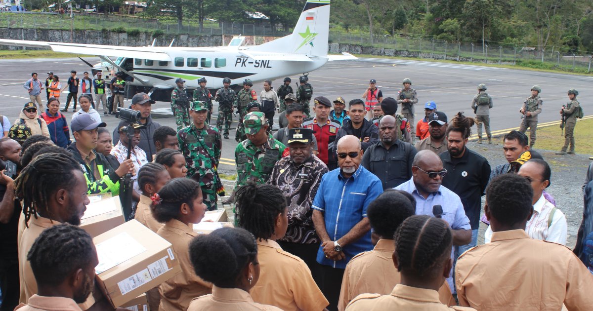 MULIA - Dandim 1714/Puncak Jaya Letkol Inf Bagus Kurniawan M.Han Dalam rangka mendampingi Pemerintah Provinsi Papua Tengah yang terus memperkuat komitmen di bidang pendidikan dan pelestarian budaya generasi muda, Gubernur Papua Tengah, Meki Nawipa, S.H., didampingi Wakil Gubernur serta Ketua KNPI Papua Tengah, melakukan penyerahan bantuan laptop kepada pelajar SMA dan SMK dari Kabupaten Puncak Jaya pada hari Sabtu (24/01/2026).