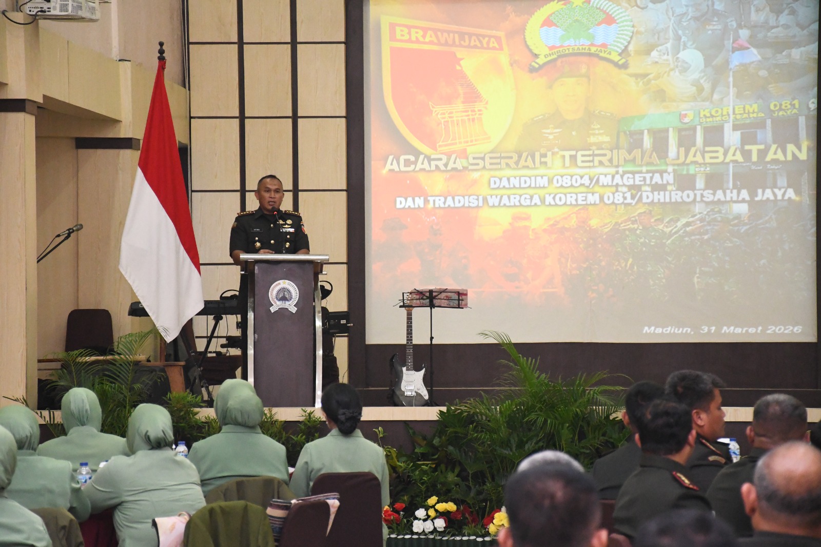 ”Mutasi jabatan di tubuh TNI merupakan hal yang biasa dalam rangka pembinaan karier prajurit dan kebutuhan organisasi,” katanya dalam sambutan pada acara Sertijab Dandim 0804/Magetan di Aula Jenderal Sudirman, Makorem 081/DSJ, Jl. Pahlawan No. 50, Kota Madiun, Senin (31/3/2026) petang.