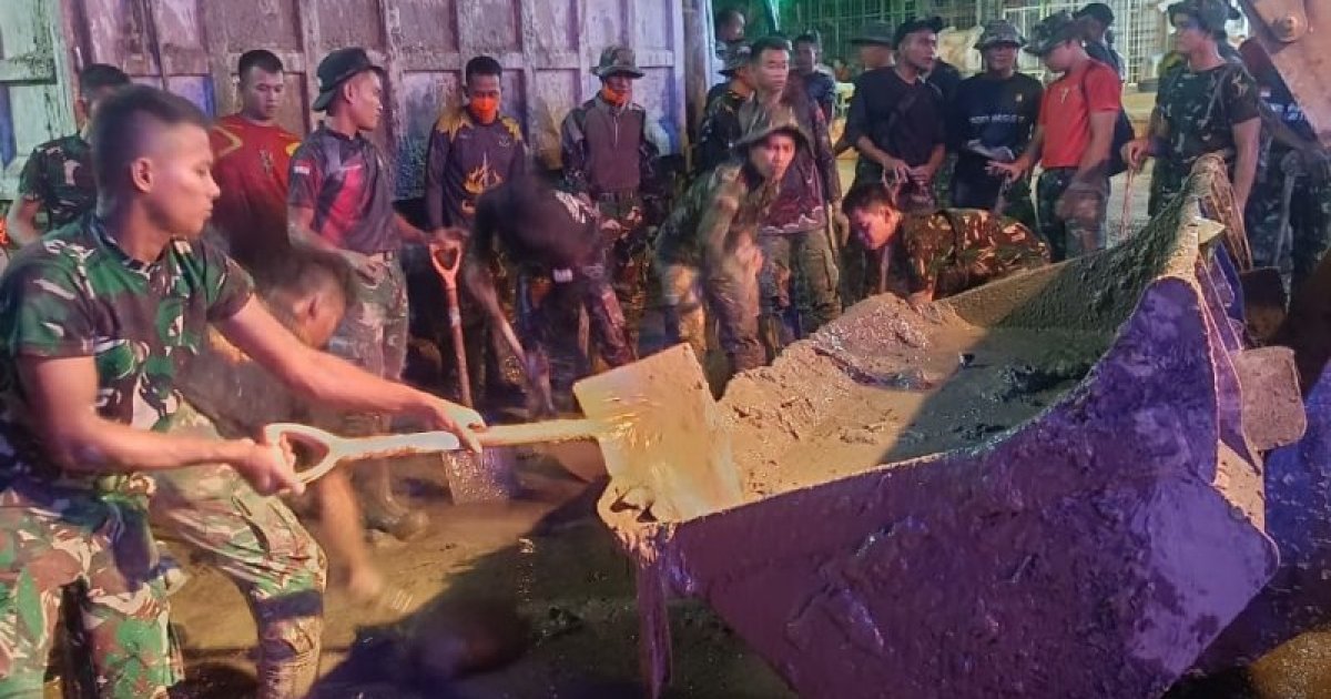Meski dihadapkan pada keterbatasan penerangan, para prajurit tetap bekerja secara maksimal dengan bantuan alat penerangan sederhana berupa senter serta sorotan lampu kendaraan operasional. Untuk mendukung kegiatan tersebut, sebanyak lima unit mobil pemadam kebakaran dari BNPB turut dikerahkan guna menyemprot dan membersihkan sisa lumpur yang masih mengendap di badan jalan, area pasar, serta saluran drainase.