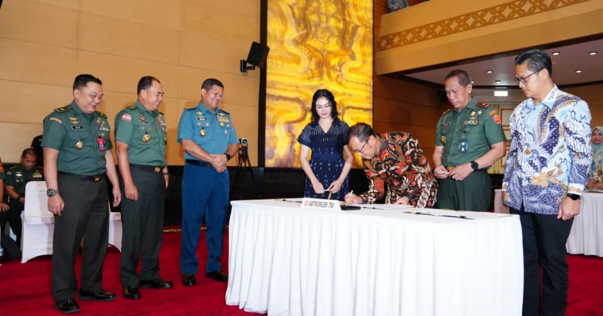 JAKARTA - Panglima TNI Jenderal TNI Agus Subiyanto yang diwakili Inspektur Jenderal (Irjen) TNI Laksdya TNI Hersan memimpin acara Penandatanganan Kontrak Pengadaan Barang/Jasa secara kolektif UO Mabes TNI Tahun Anggaran 2026. Kegiatan tersebut berlangsung di Aula Gatot Subroto Mabes TNI, Cilangkap, Jakarta Timur, Rabu (28/01/2026).