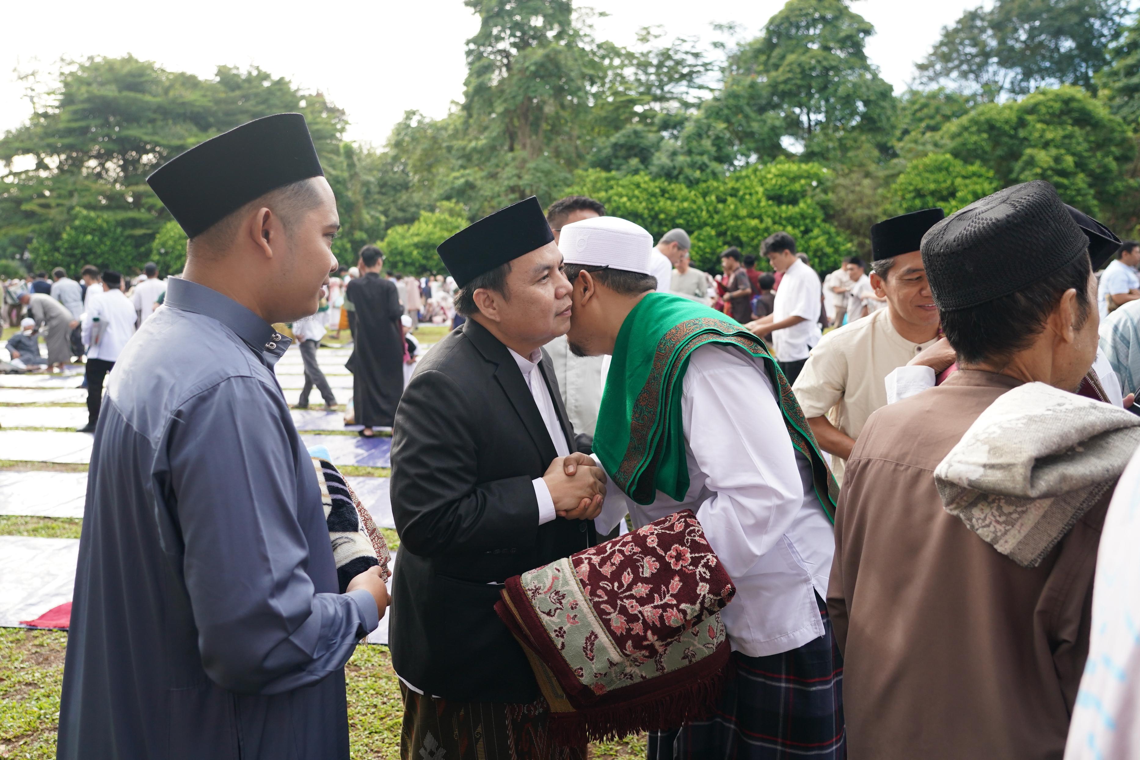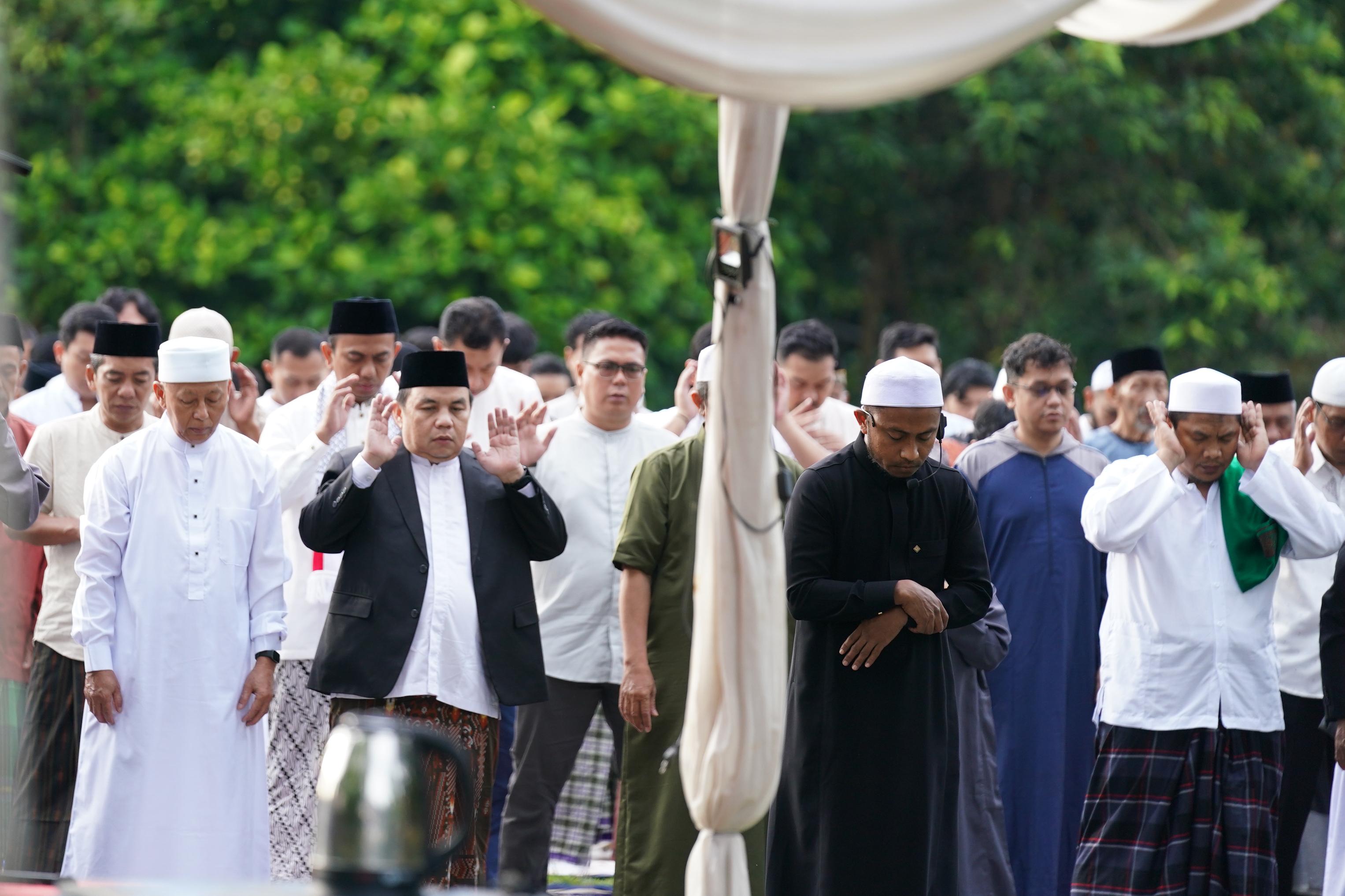 "Ibadah puasa telah memberikan pelajaran berharga tentang arti menahan diri dari godaan, hawa nafsu, dan hal-hal lain yang tak berguna," ujar Adityawarman di hadapan jamaah.