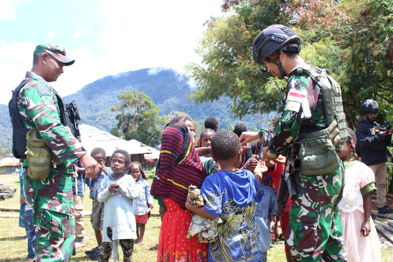 Puncak Jaya – Komandan Distrik Militer (Dandim) 1714/Puncak Jaya, Letkol Inf Bagus Kurniawan, M.Han., didampingi personel Makodim 1714/PJ, melaksanakan Peduli Kemanusiaan meninjau masyarakat pengungsi asal Distrik Sinak, Kabupaten Puncak.
