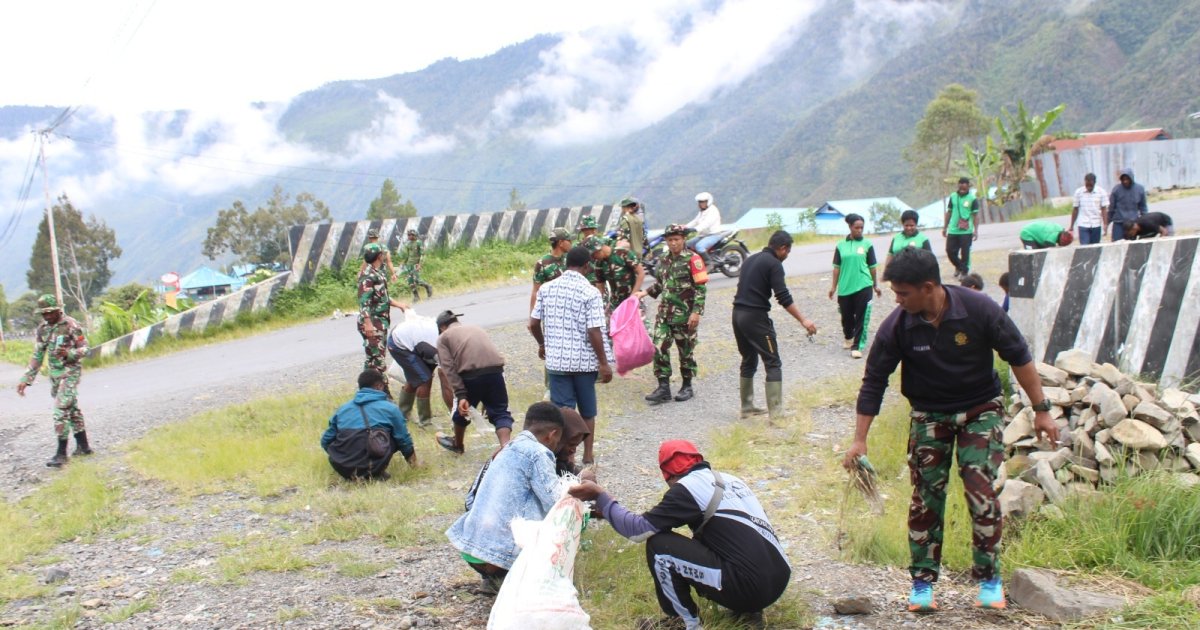 “Kami bersama masyarakat bergotong royong membersihkan sampah di sepanjang aliran sungai dengan harapan dapat menciptakan lingkungan yang bersih dan indah, sehingga terhindar dari potensi munculnya wabah penyakit di Kabupaten Puncak Jaya,” ujar Letda Inf Toding Gayang.