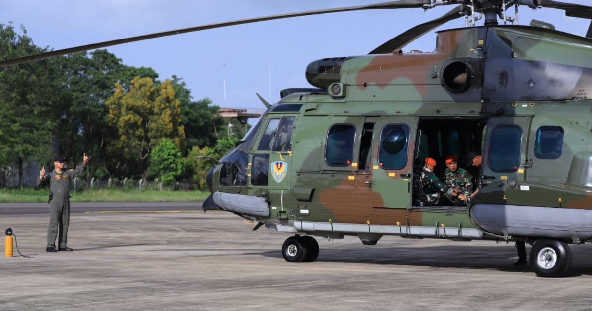 MAKASSAR - TNI Angkatan Udara dalam hal ini Lanud Sultan Hasanuddin mengerahkan Helikopter H225M Caracal H-2213 untuk membantu pencarian pesawat ATR-42-500 milik Indonesia Air Transport (IAT) yang dilaporkan hilang kontak pada Sabtu (17/1/2026). Pesawat tersebut terbang dari Yogyakarta menuju Makassar dengan membawa 7 kru dan 3 penumpang.