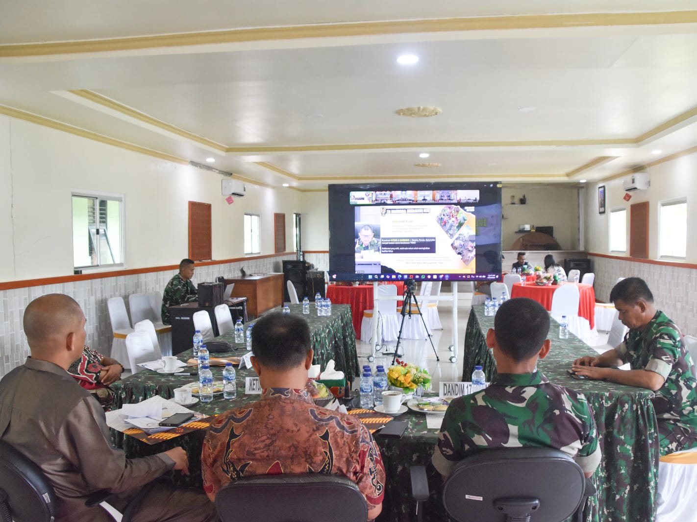 Timika - Komandan Kodim 1710/Mimika, Letkol Inf Jozanda, mengikuti Rapat Koordinasi Teknis (Rakornis) TNI Manunggal Membangun Desa (TMMD) ke-128 Tahun 2026 secara virtual di Ruang Rapat Makodim 1710/Mimika, Jalan Agimuga Mile 32, Kabupaten Mimika, Papua Tengah, Kamis (16/4/2026).