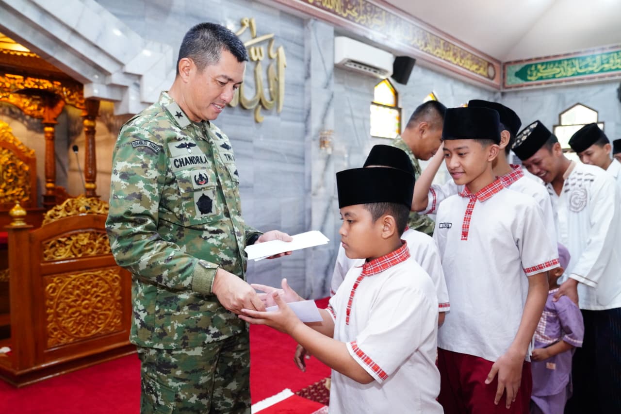 Selain itu, kegiatan juga diisi dengan pemberian santunan kepada 99 anak yatim sebagai wujud nyata kepedulian sosial TNI kepada masyarakat. Hal ini sekaligus mencerminkan komitmen TNI dalam menanamkan nilai-nilai kemanusiaan, solidaritas, dan kebersamaan di tengah pelaksanaan tugas pengabdian kepada bangsa dan negara.