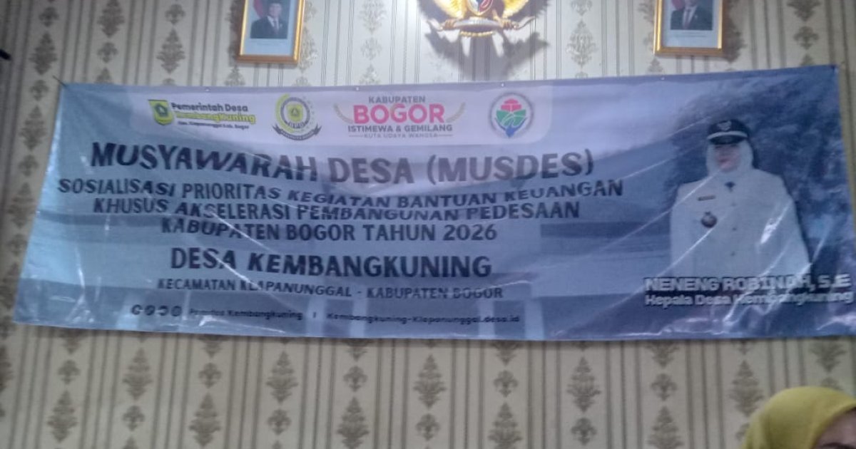 BOGOR — Pemerintah Desa Kembangkuning, Kecamatan Klapanunggal, Kabupaten Bogor, menggelar Musyawarah Desa (Musdes) dalam rangka sosialisasi prioritas kegiatan Bantuan Keuangan Khusus (BKK) Akselerasi Pembangunan Pedesaan Tahun Anggaran 2026.