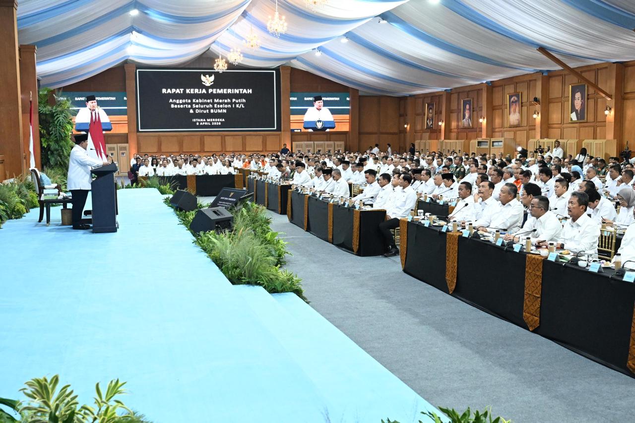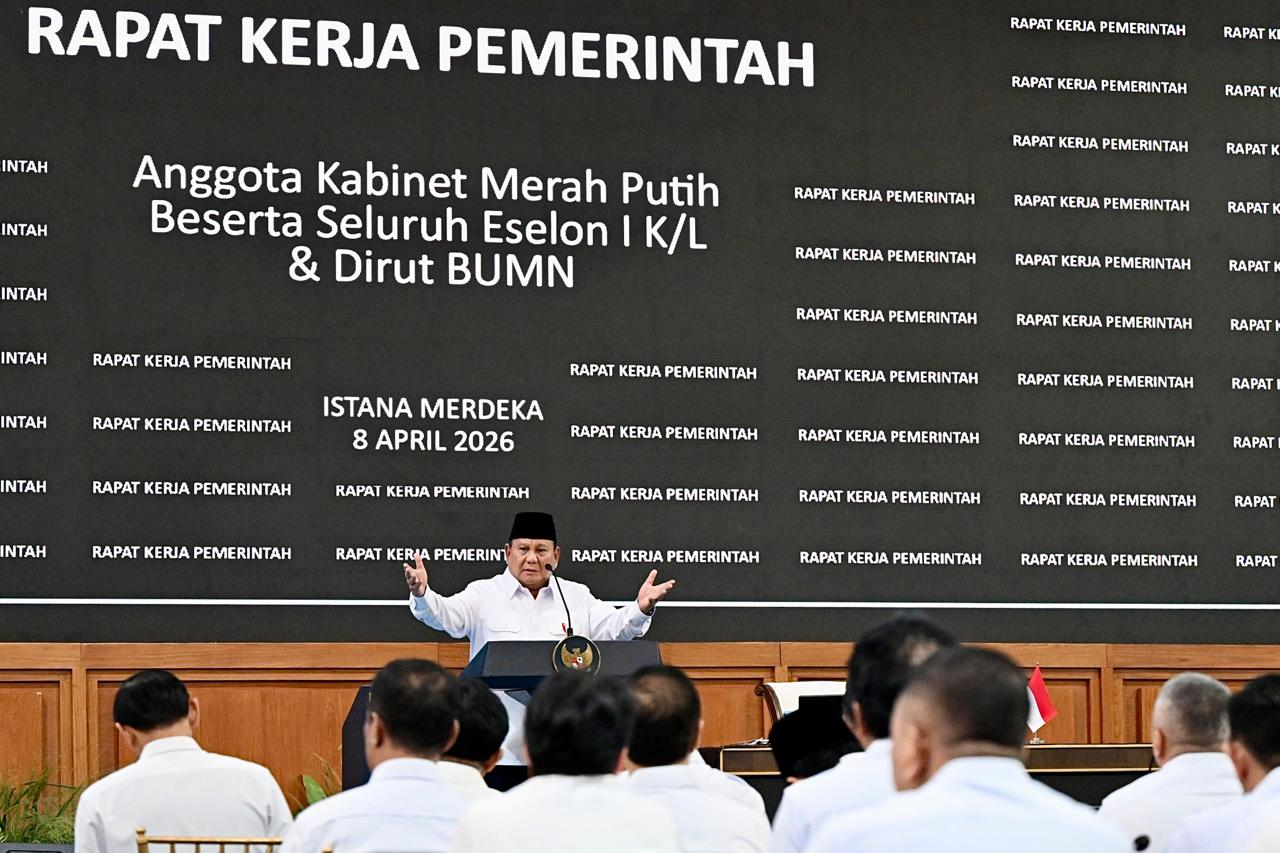 JAKARTA, - (Puspen TNI). Panglima TNI Jenderal TNI Agus Subiyanto menghadiri Rapat Kerja Pemerintah yang dipimpin langsung oleh Presiden RI Prabowo Subianto bersama anggota Kabinet Merah Putih, Pejabat Eselon I Kementerian/Lembaga, serta Direktur Utama BUMN, bertempat di Kompleks Istana Kepresidenan Jakarta, Rabu (8/4/2026).