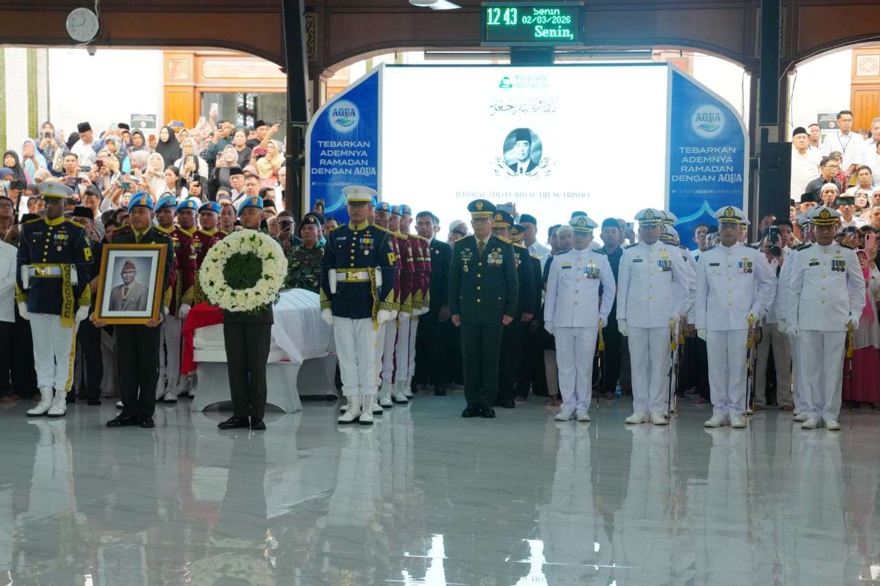 JAKARTA - Panglima TNI Jenderal TNI Agus Subiyanto memimpin upacara penyerahan jenazah Wakil Presiden ke-6 Republik Indonesia almarhum Jenderal TNI (Purn) Try Sutrisno kepada negara yang dilaksanakan secara khidmat di kawasan Masjid Sunda Kelapa, Menteng, Jakarta Pusat, Senin (2/3/2026).