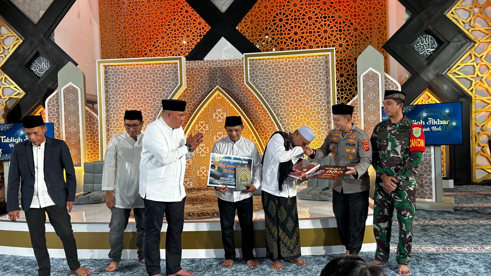 "Alhamdulillah, malam ini kami dari jajaran Polres Bogor dapat menyerahkan 2.000 Al-Quran hasil waqaf dari seluruh anggota. Ini adalah wujud nyata kecintaan kami terhadap Al-Quran dan bentuk kepedulian kepada umat di bulan suci Ramadhan.