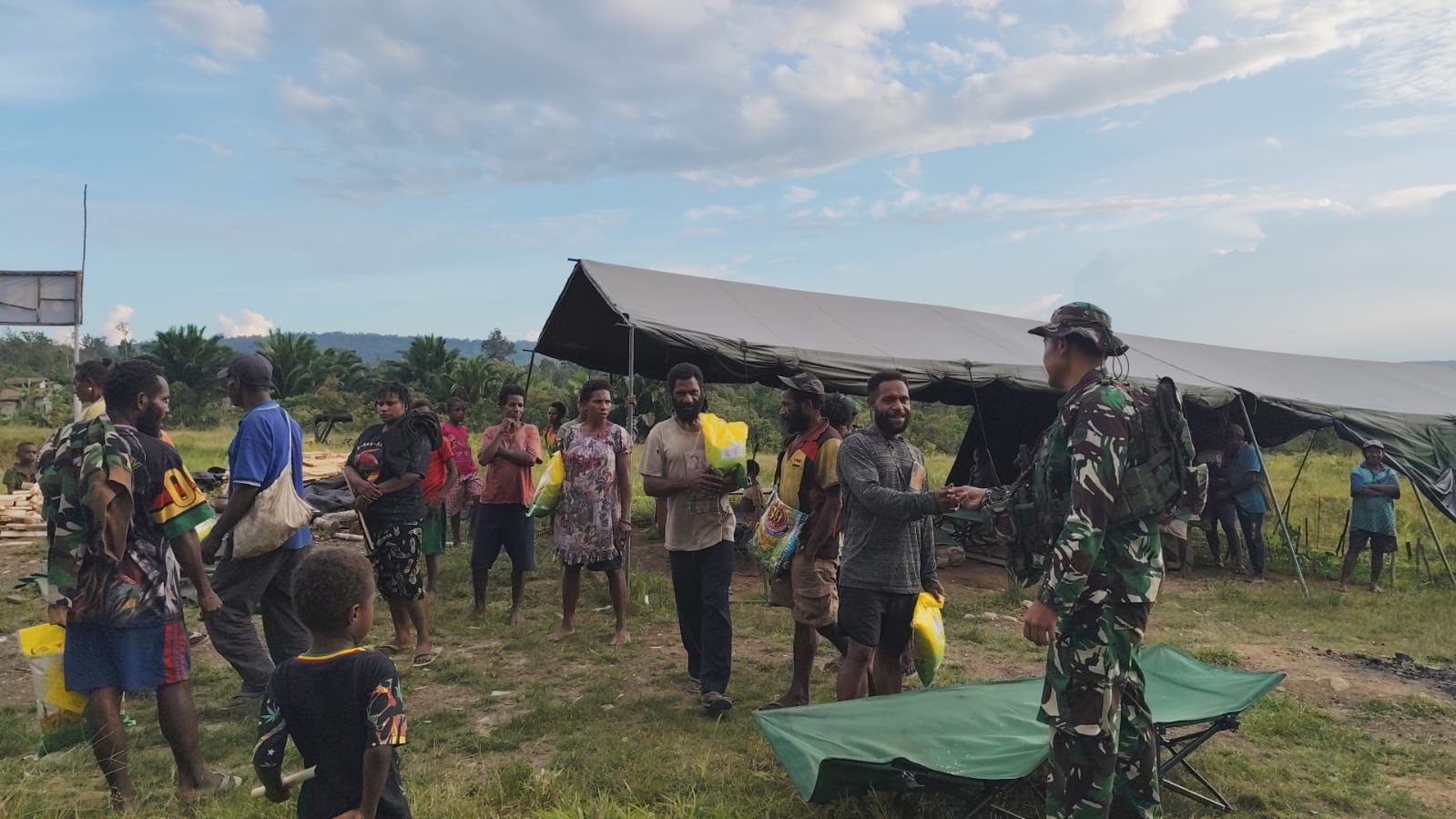 Tarup, Pegunungan Bintang — Pos Tarup Yonif 751/Vira Jaya Sakti (VJS) Satgas Swasembada melaksanakan kegiatan teritorial berupa pembagian sembako kepada masyarakat Tarup. Pembagian dilaksanakan di area Pos Tarup sebagai wujud kepedulian TNI dalam membantu kebutuhan dasar warga sekaligus mempererat kemanunggalan TNI–rakyat di wilayah perbatasan. (Senin,16/3/2026).