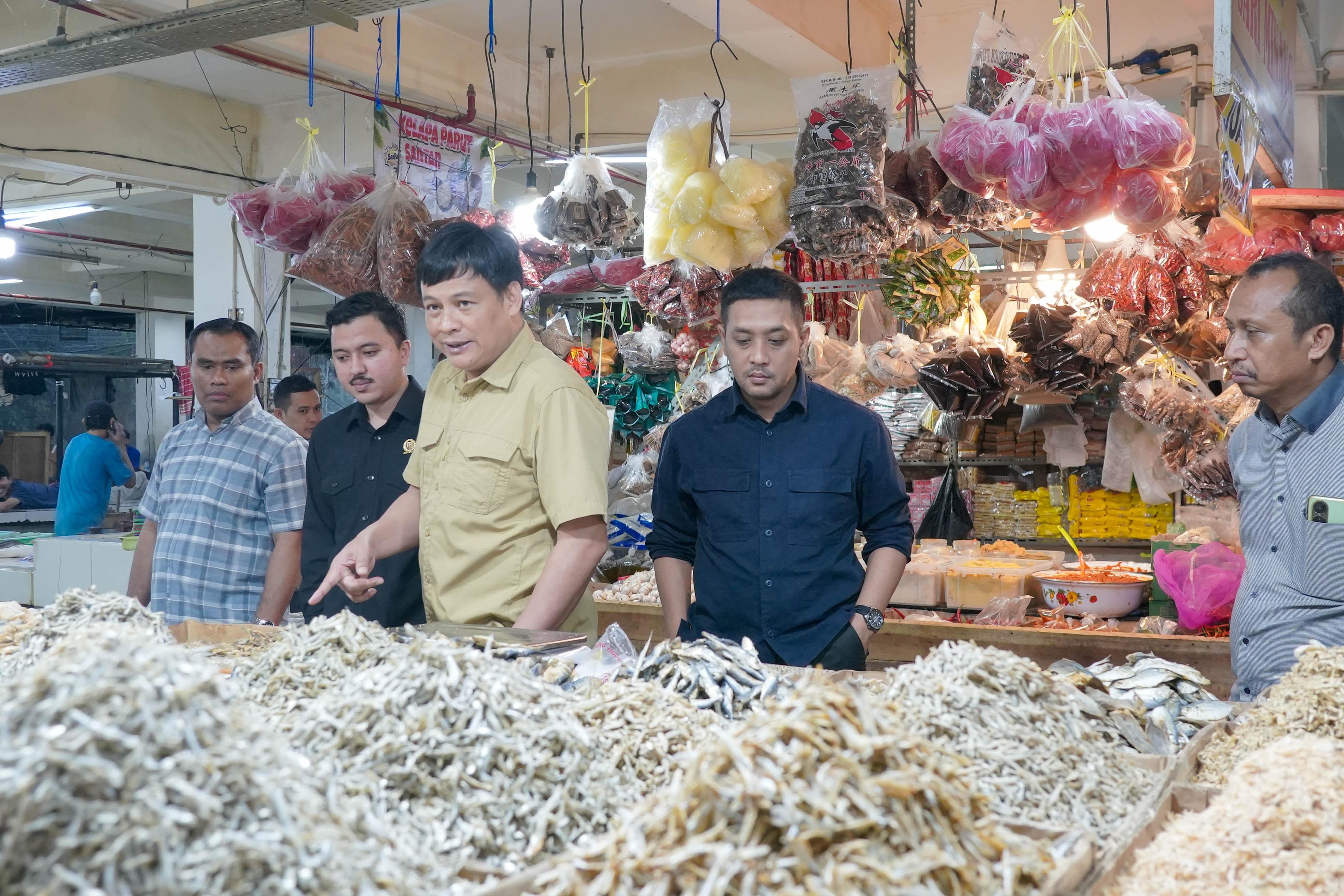 Ketua Komisi II DPRD Kota Bogor, Achmad Rifki Alaydrus didampingi oleh anggota Komisi II lainnya, Heri Cahyono dan Abdul Kadir Hasbi Alatas langsung memantau stabilitas harga komoditas pangan serta fasilitas pendukung pasar menjelang hari raya Idul Fitri.