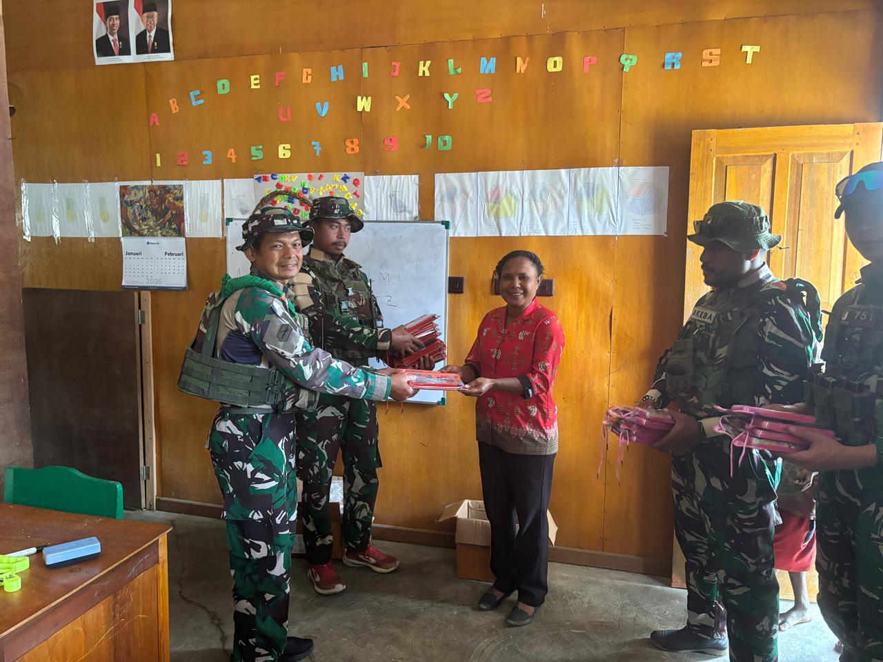Wanbakon, Distrik Serambakon, Pegunungan Bintang — Pos Serambakon Satgas Swasembada Yonif 751/Vira Jaya Sakti (VJS) melaksanakan kegiatan anjangsana ke TK Wanbakon sebagai bagian dari pembinaan teritorial yang humanis dan edukatif. Kegiatan ini bertujuan menanamkan nilai moral, keimanan kepada Tuhan, serta membentuk kebiasaan sopan santun sejak usia dini bagi anak-anak di wilayah perbatasan. (Senin,9/3/2026).
