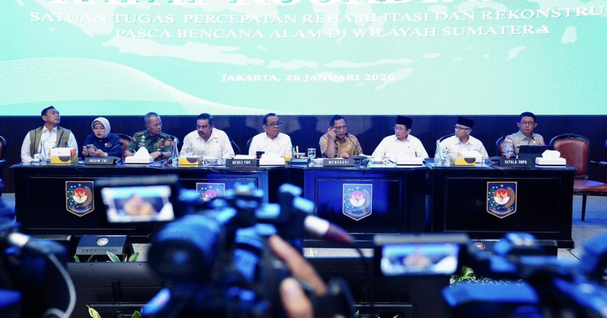 JAKARTA - Kepala Staf Umum TNI Letjen TNI Richard Tampubolon selaku Wakil Ketua I Satuan Tugas (Satgas) menghadiri Rapat Koordinasi dalam rangka percepatan pelaksanaan Rehabilitasi dan Rekonstruksi Pasca Bencana Alam di Wilayah Sumatera, yang dilaksanakan di Ruang Sasana Bhakti Praja Gedung C Lantai 3 Kemendagri, JI. Medan Merdeka Utara Nomor 7, Jakarta Pusat, Senin (26/1/2026).