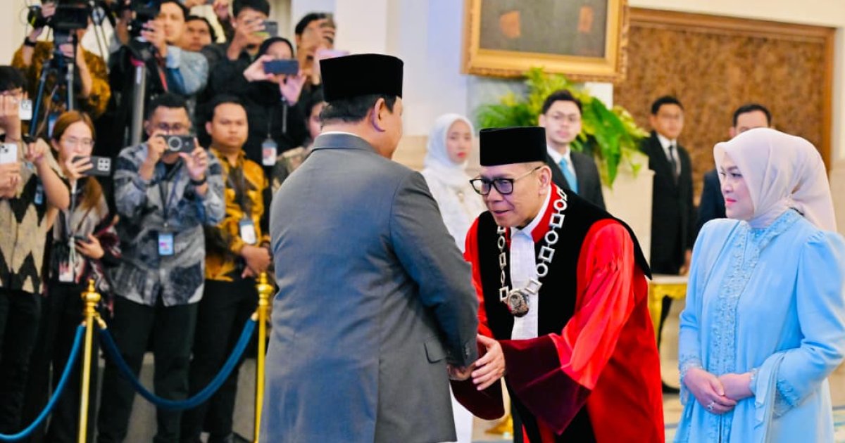 Pada kesempatan tersebut, Presiden Republik Indonesia melantik Adies Kadir sebagai Hakim Mahkamah Konstitusi Republik Indonesia berdasarkan Keputusan Presiden Republik Indonesia Nomor 9/P Tahun 2026 tentang Pemberhentian dan Pengangkatan Hakim Mahkamah Konstitusi.